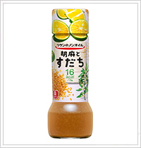 新商品「リケンのノンオイル 胡麻とすだち」は、うどん専門店を中心に身近になった柑橘「すだち」を馴染みのあるすりごまとあわせ、穏やかな酸味とごまのコクで、苦味のある水菜や工場野菜などもノンオイルでヘルシーに召し上がれます。