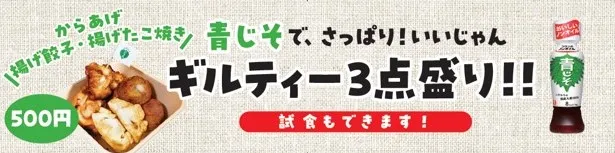 ブースでは『リケンのノンオイル 青じそ』をかけた「ギルティーフード3点盛り」を販売します。さらに購入特典として「SWEET LOVE SHOWER 2025」とのコラボ缶バッジをプレゼントいたします。