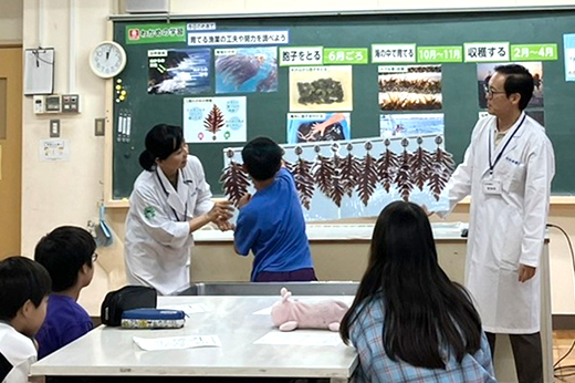 「わかめ学習」を通して、わかめが全て手作業で丁寧に育てられていることや漁師さんの思いを知り、自分たちが普段食べているわかめの大切さを改めて実感しました。また、命を育てる責任や海を守っていかなければいけないという使命感をもつこともできました。